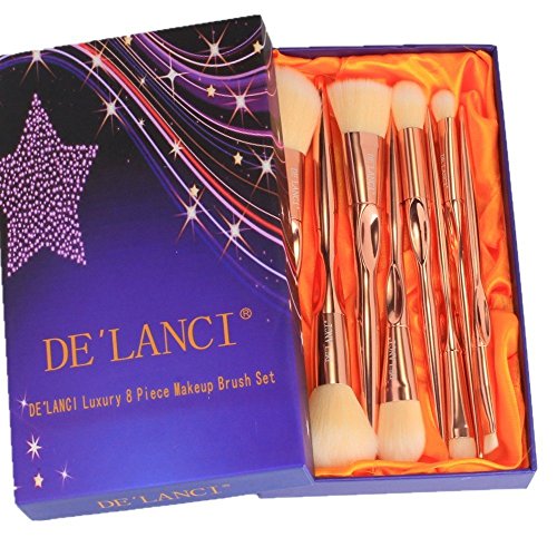 Features: DE'LANCI 8Pcs makeup brushes have Elegant Appearance, Silky Soft White Brush Hair, Rose Gold Handle and Luxurious Gift Box.