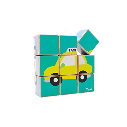 -. Title : Wooden Cube Traffic Pattern Jigsaw Puzzle Kids Pre-School Learning Time Toys