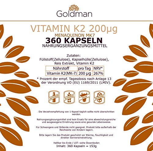 -. Title : Goldman Premium Vitamin K2 MK7 200 µg - 360 vegetarische Kapseln