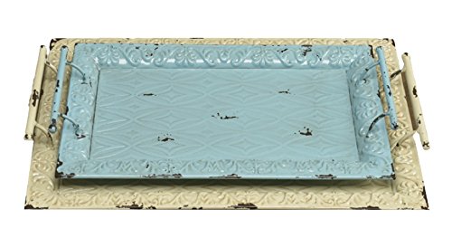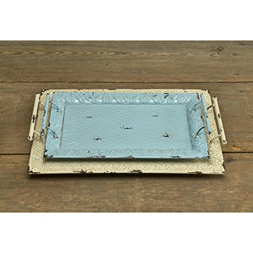 Caffco International Distressed Metal Rectangular Trays (Set of 2), Blue/White