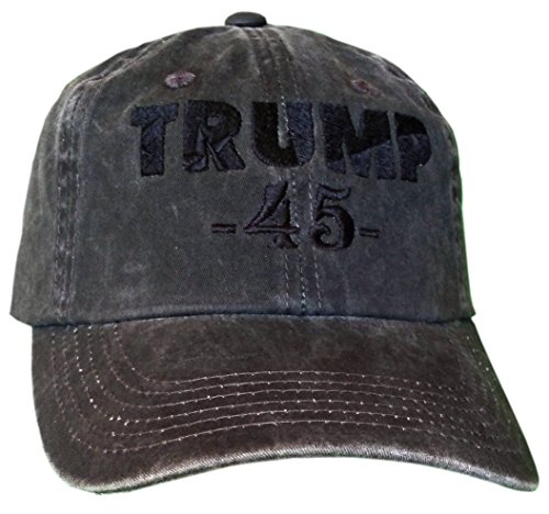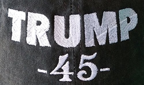 Binding : Apparel Product Description "TRUMP 45" embroidered front and center, in a beautifully textured black (tone-on-tone), White or Red, White Blue design! The design has two stars, subtly embroidered in the "T" and "R" progressing to an angled line in different textures stretching to the "P." The "45" is in celebration of our 45th President, Donald J. Trump. It's time to RECLAIM our country in unified support of President Trump! # USA #AmericaFirst #DTS #DrainTheSwamp *"Distressed Black" is not made in the USA. The "Stone/Black 'Pancake'" style IS made in America! BOTH STYLES have been designed embroidered right here in the heart of America, Batavia, OH **Computer monitors are all different therefore color shades MAY vary slightly. ⓒ 2017 Treefrogg Apparel/Treefrogg Specialties, Inc. 0