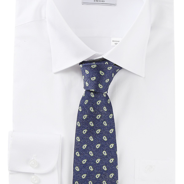 깔끔한 청네이비 바탕 칼라에 산뜻한 민트 미니 페이즐리가