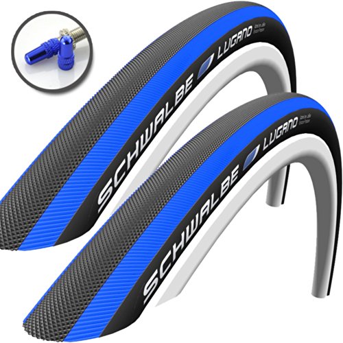 -. Title : 2 x Schwalbe Lugano Tires (A PAIR) 700 x 23 - BLUE STRIPE - FREE SHIPPING - FREE VALVE CAP UPGRADE WORTH $4.99!
