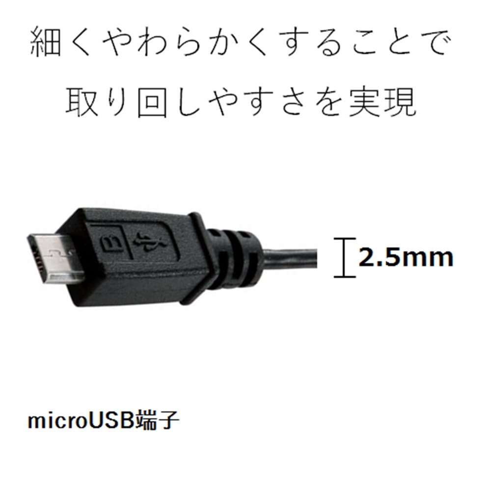It is a Micro-USB cable using 2.5 mm in diameter, fine and easy to connect fine cables.