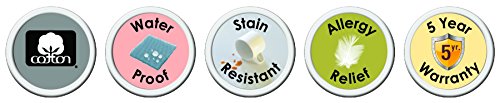 -. Feature : 100% Cotton jersey fabric washed soft like your favorite T-shirt - with a micro-layer of TPU barrier protection. / Waterproof and stain resistant. / Allergy relief. / 5 Year warranty