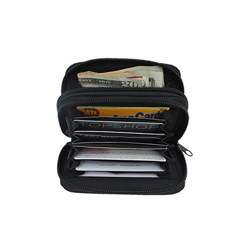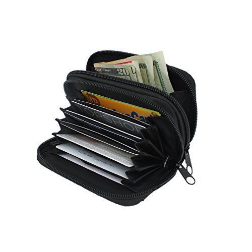 -. Feature : Tested Safe - Integrated RFID blocking technology protects your card information from electronic theft by blocking RFID readers / Features 2 zippered compartments for your cash and coins, see through ID window, and accordion folds that comfortably hold 12 credit cards / Stop Theft - Avoid RFID skimming by using this every day to block your cards' RFID signals against electronic pickpocketing / Shields RFID enabled cards such as credit cards, debit cards, driver license, & ID cards) / Provides peace of mind while traveling on vacation and surrounded by strangers in airports, crowded streets, and shopping