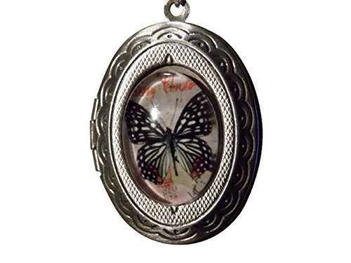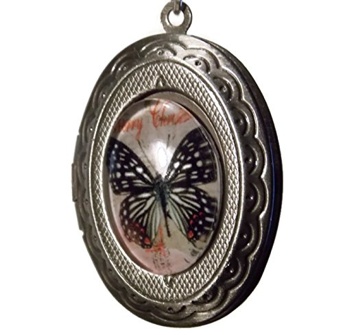 Photo Locket Necklace on 20 Inch Silver Toned Chain - Features Stunning Butterfly Inset on Front Under Epoxy Dome - Inside Holds Two Pictures - External Dimensions 20mm x 30mm - Old School Geekery TM