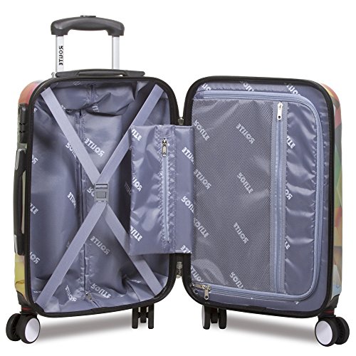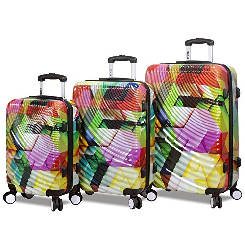 Studio : S E Publisher : S E Product Description A perfect getaway deserves a perfect suitcase for your stuff, and we just found the best and fitting item for you with this all new graphic geometric swirls desin. A must have. Set includes: 3 Suitcases; 20" Carry-On Dimensions: 20" H x 14" L x 9" W - 6.15 lb. 24" Upright Dimensions: 24" H x 17" L x 10" W - 8.15 lb. 28" Upright Dimensions: 28" H x 19" L x 11.5" W - 9.85 lb. Features: Locking, Multi-Compartment, Spinner, Fashion, Hardshell, Lightweight and Durable | Materials: Polycarbonate 0