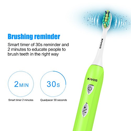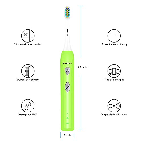 KIVOS sonic electric toothbrush for adult children:ABS handle with 2pcs Food Grade PP duPont brush heads. soft reminder bristles fade to ensure you know when it is time to replace them.