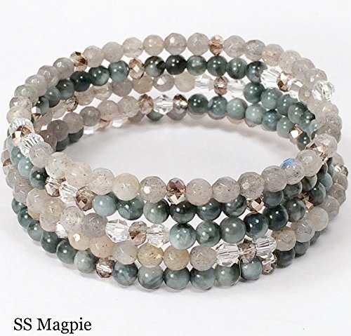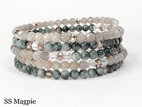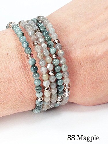 -. Title : 5 wrap Grey Agate and Labradorite wrap bracelet