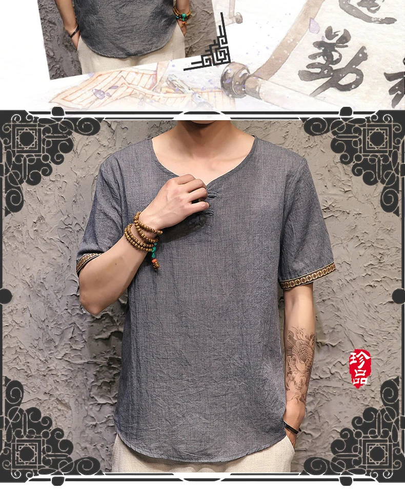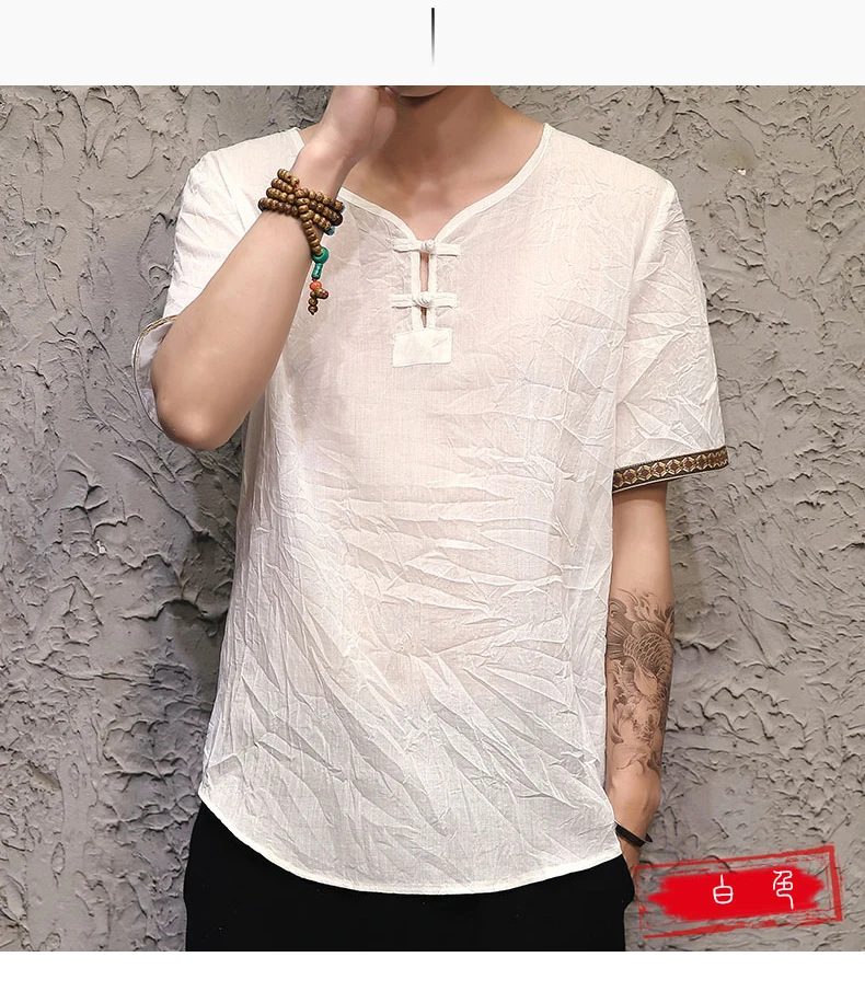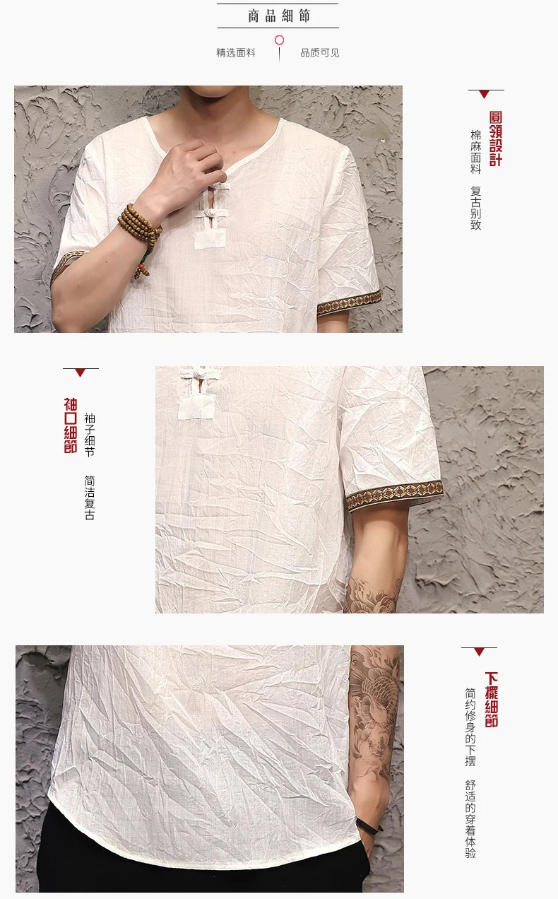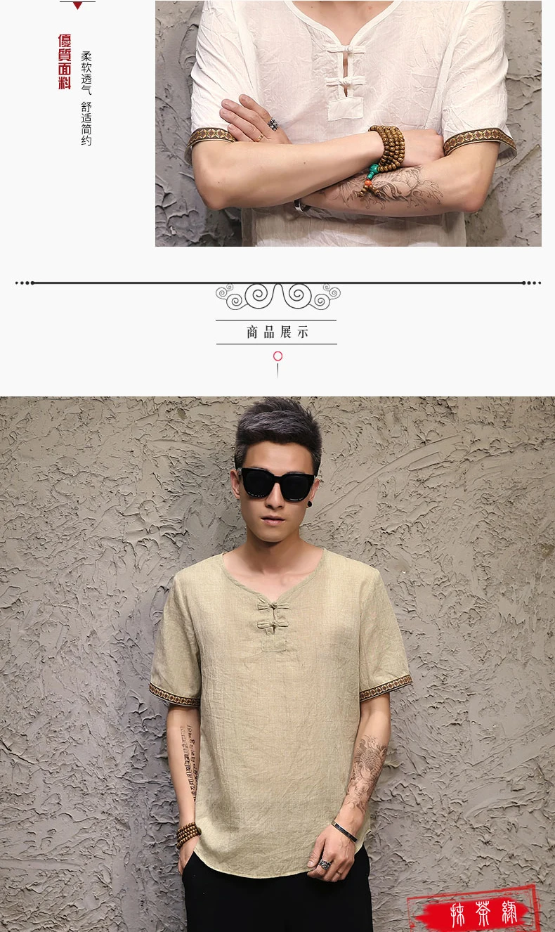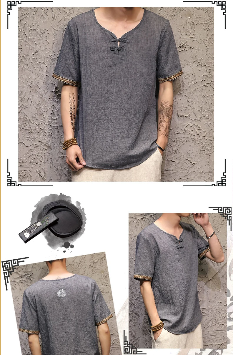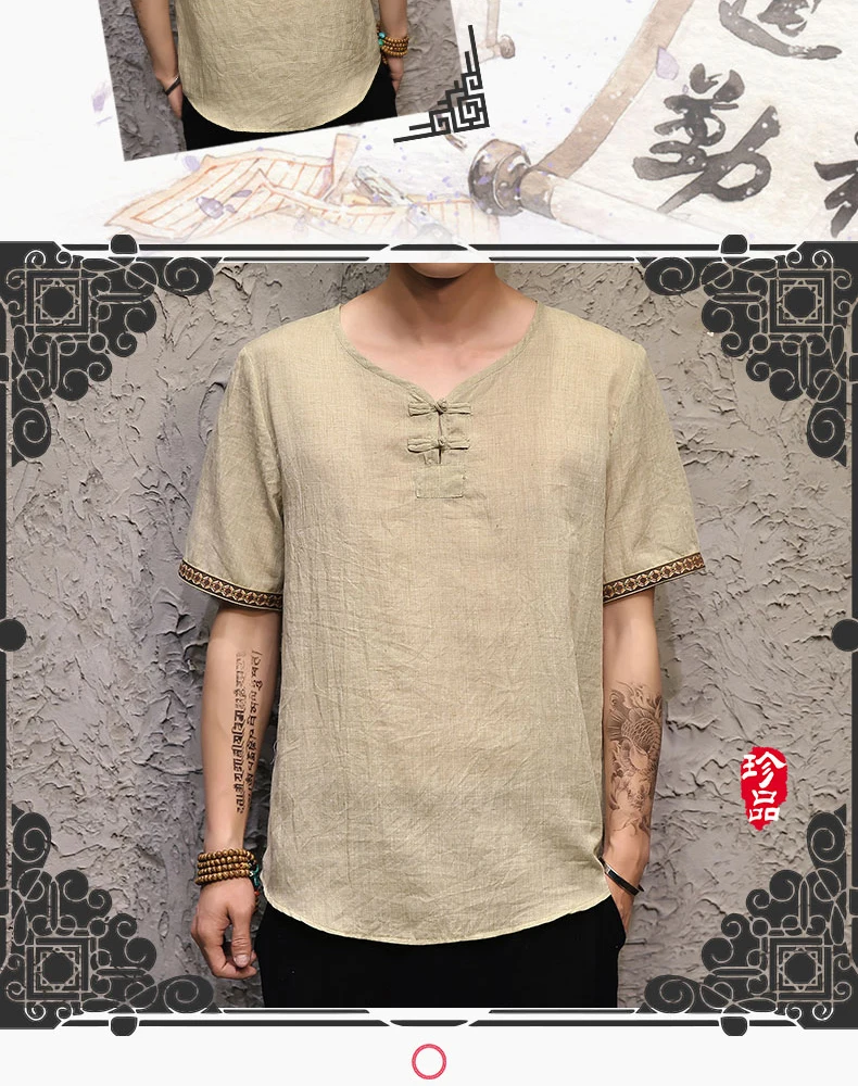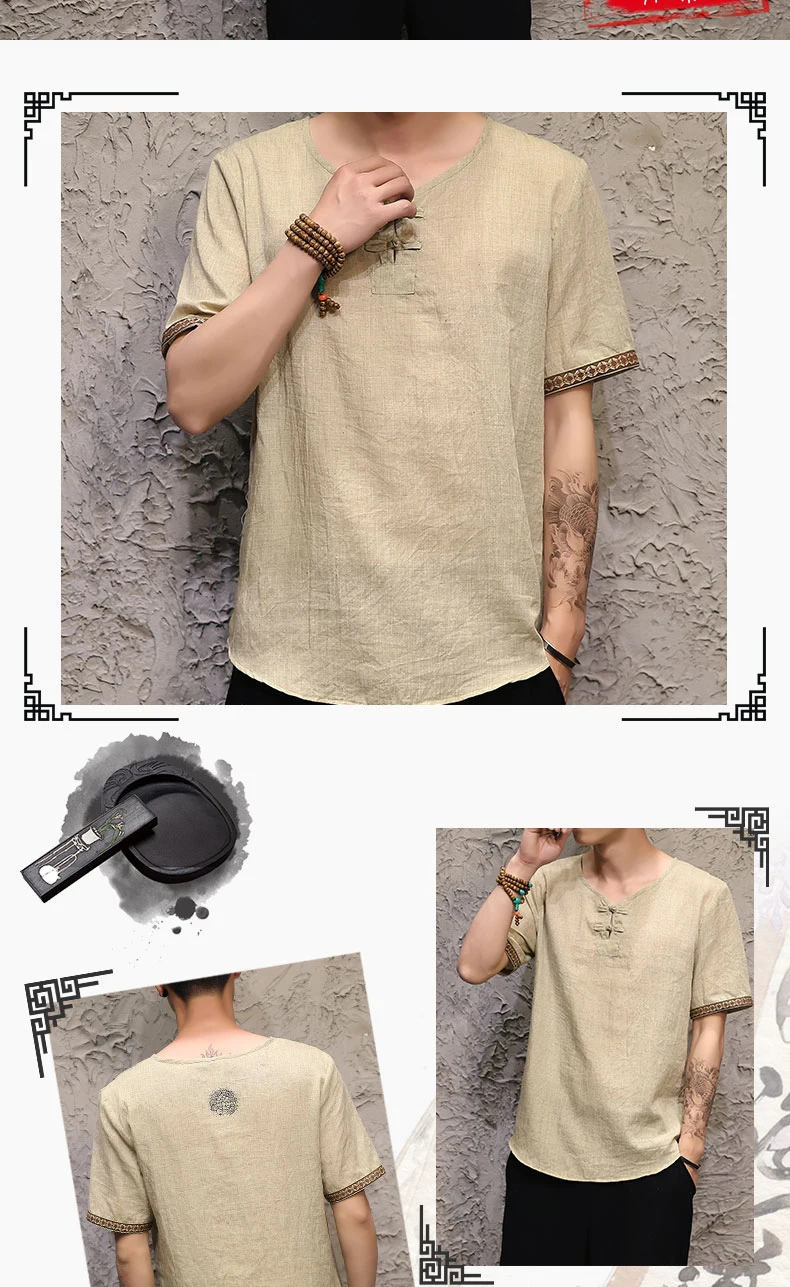 Key Word:Cotton Linen Short Sleeve Shirts Men