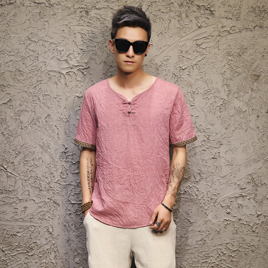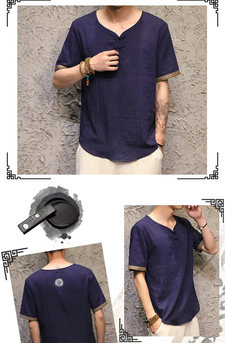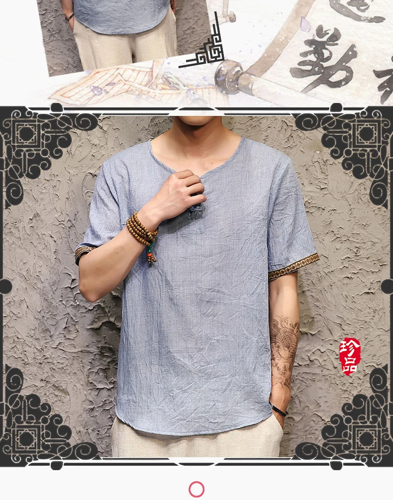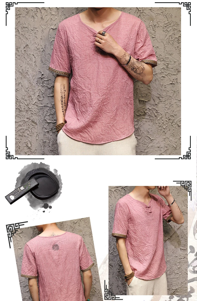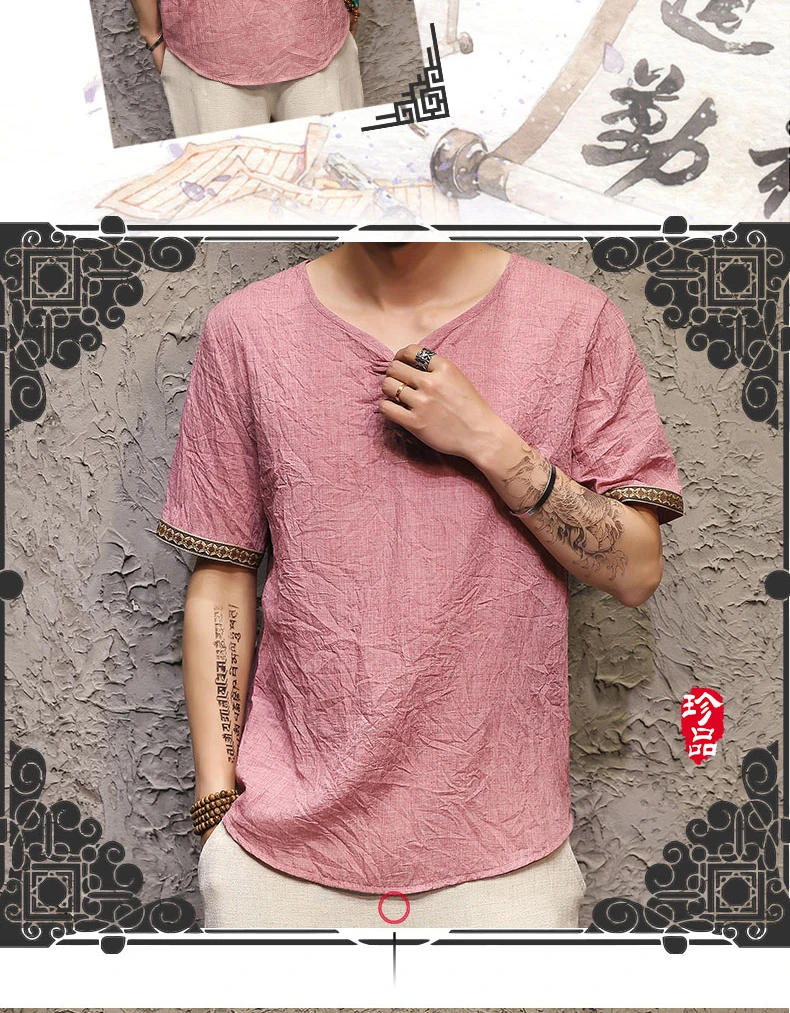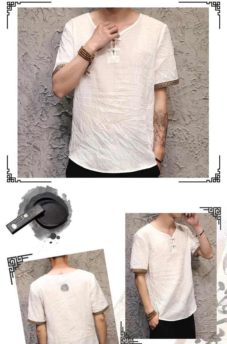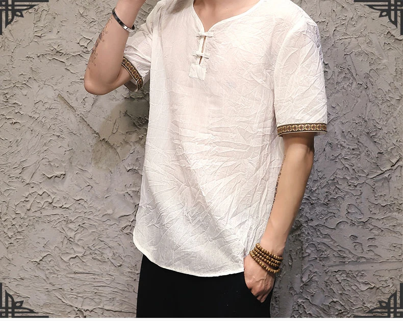 Key Word:Cotton Linen Short Sleeve Shirts Men