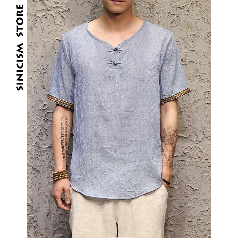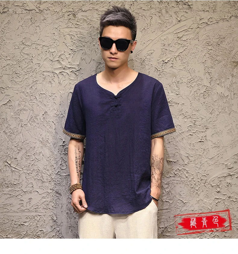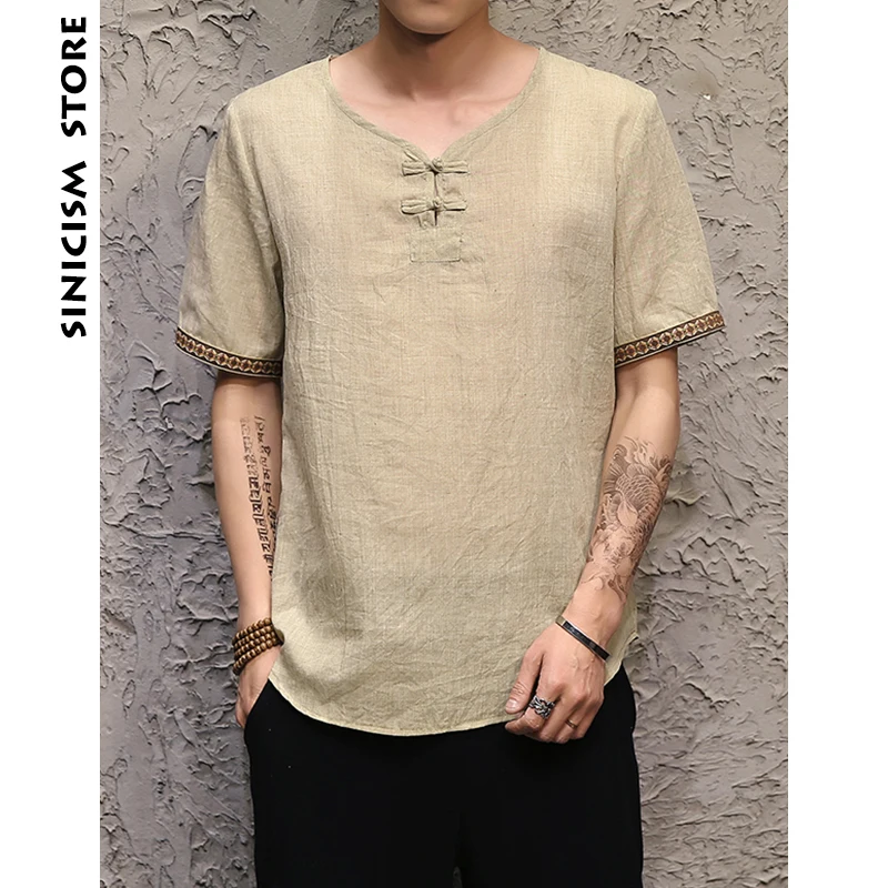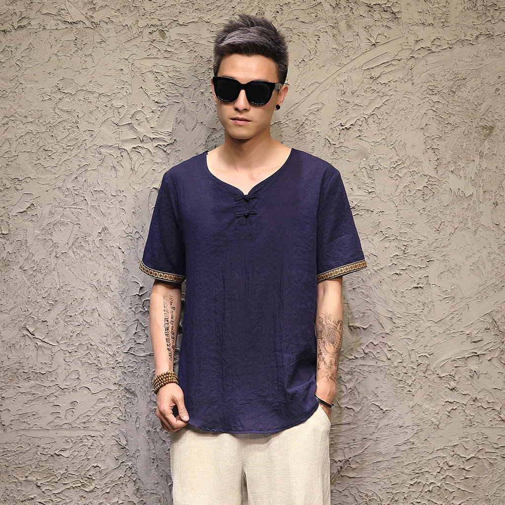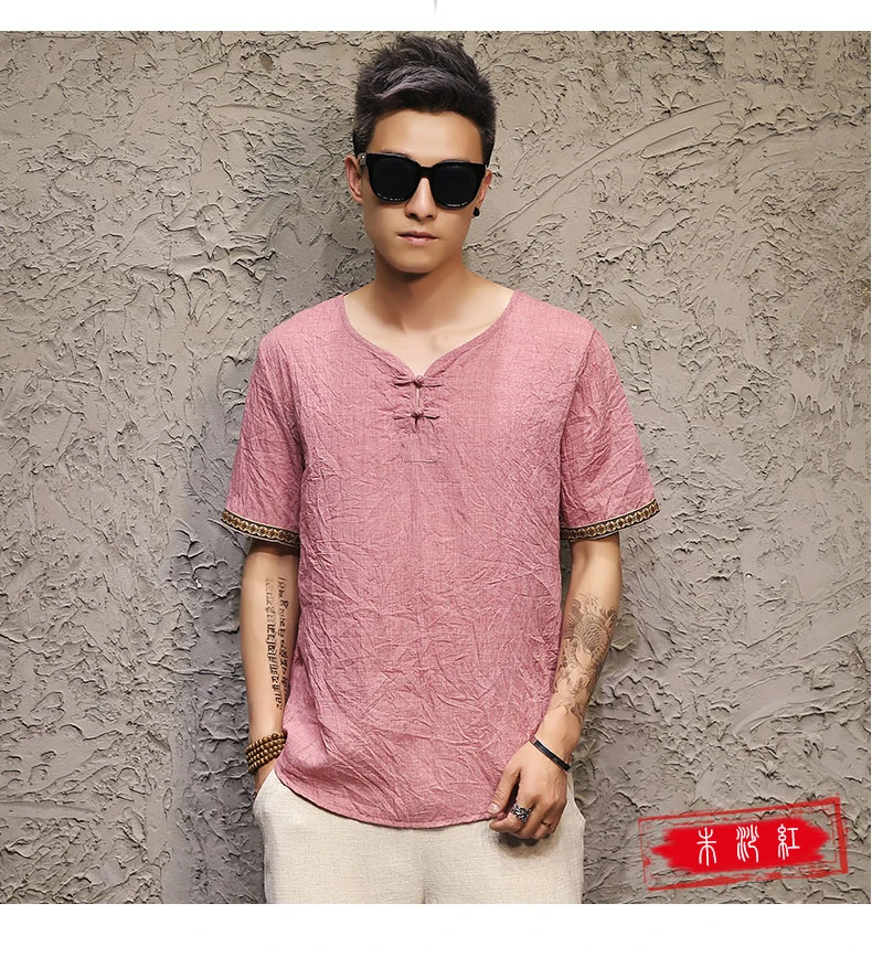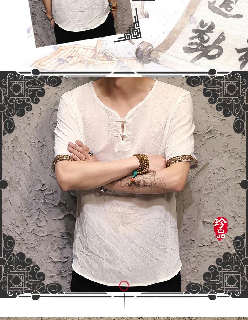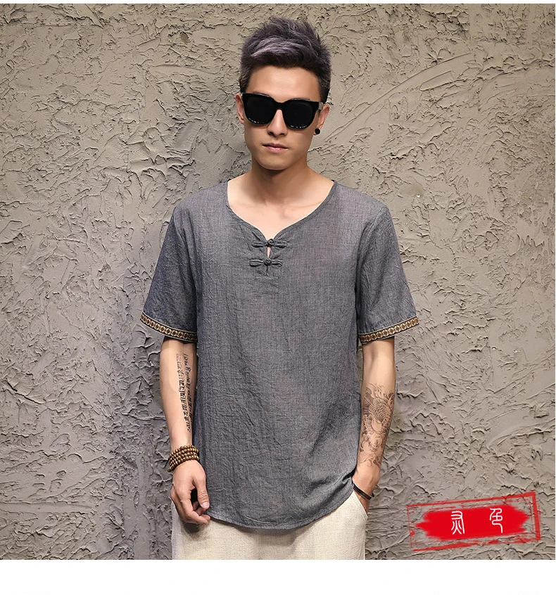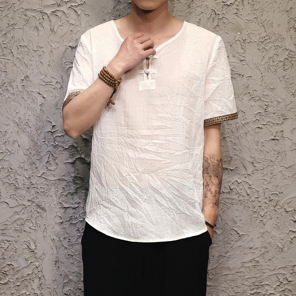Key Word:Cotton Linen Short Sleeve Shirts Men