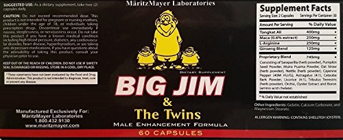 Xtreme Testrone :Originally used for body builders and weight lifters, Extreme Testrone will help to promote vim, vigor and vitality as well as dramatically increasing sexual function, energy, endurance and stamina. Extreme Testrone will also increase natural testosterone production increasing your strength and stamina. This combination of all natural ingredients is specifically designed to work synergistically with your body's natural testosterone production for maximum benefit and gain. Big Jim & The Twins: This is a potent male enhancement formula fortified with powerful ingredients designed to promote sexual health including Tongkat Ali, Maca, L-Arginine, Ginseng Blend, Proprietary Blend: Saraparilla, Pumpkin Seed Powder, Muira Puama Powder, Oat Straw, Nettle, Cayenne Pepper, Astragalus, Catuaba Bark Powder, Licorice, Tribulus Terrestris, Orchis, Oyster Extract, and Boron.Feature