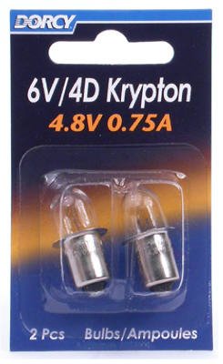 ReleaseDate : 2013-07-28 Studio : Dorcy Publisher : Dorcy Binding : Tools Home Improvement Product Description Replacement bulb with tungsten filament wires, glass tubes and copper stems. 2 pack, 6V, KPR113 krypton bulb, 4.8V, 0.75a, use in 6V/4D flashlights, bayonet base, Carded. This product adds a great value. Product is highly durable and very easy to use. This product is manufactured in china. 0