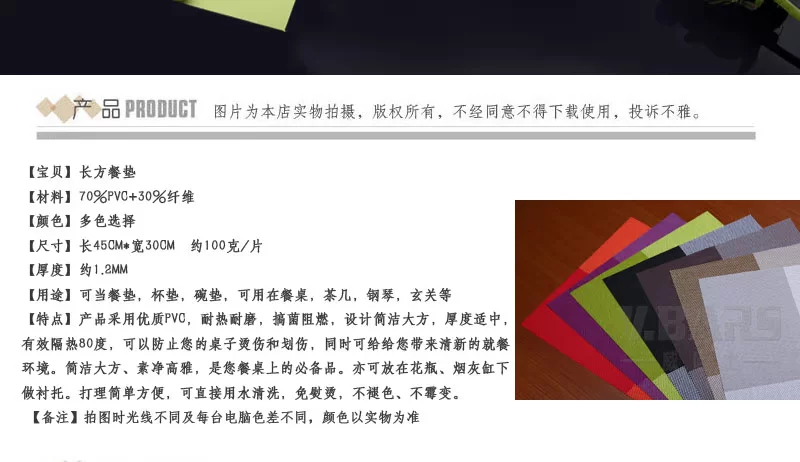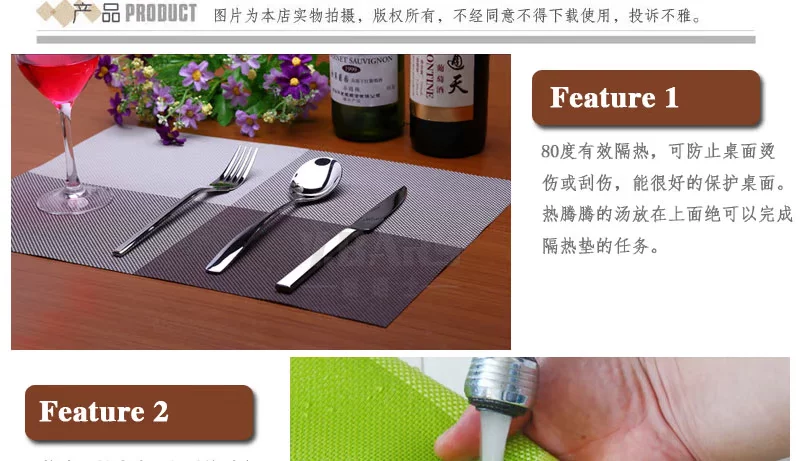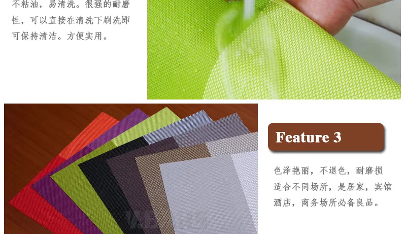采用优质PVC,耐热耐磨,抗菌阻燃,设计简洁大方,厚度适中,有效隔热80°,可以防止您的桌子烫伤和划伤,同时可给您带来清新的就餐环境。