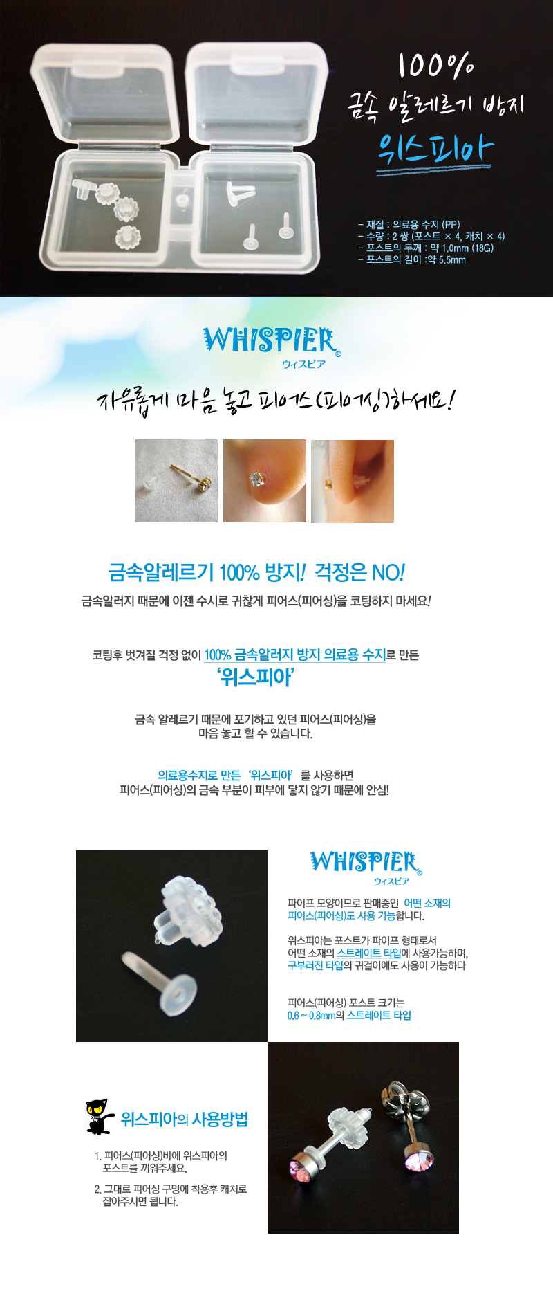 - 품명 및 모델명피어싱 금속 알레르기 방지 위스피아