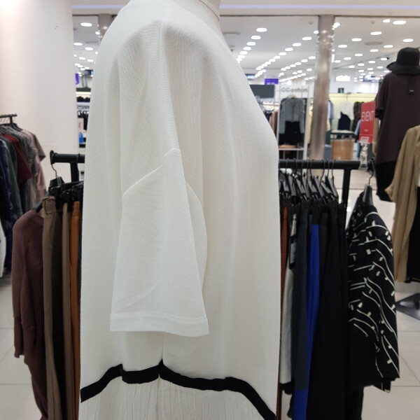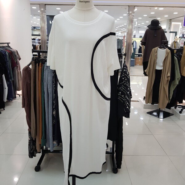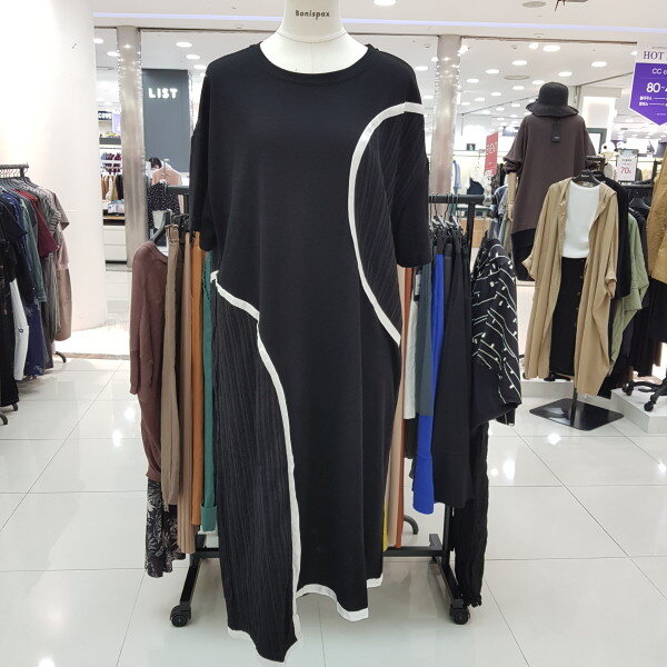 플리츠 배색이 들어간 롱 원피스입니다.라인 포인트가 디자인되어 편하면서도 멋스런 디자인으로 연출해보세요.