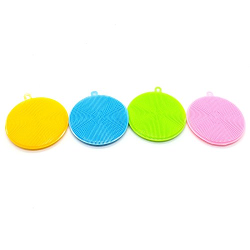 Pack Of 4 Antibacterial Silicone Dish Scrubber Dishwashing Cleaning Brush For Kitchen Wash Dish Wash Makeup Brush Wash Body Wash Face Wash Fruit and Vegetable Wash