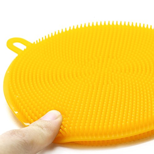 You can use this silicone brush for dishwashing, scrubbing pot or pan, washing fruit and vegetable, also it can use as a heat insulation mat, and even you can use it for shower