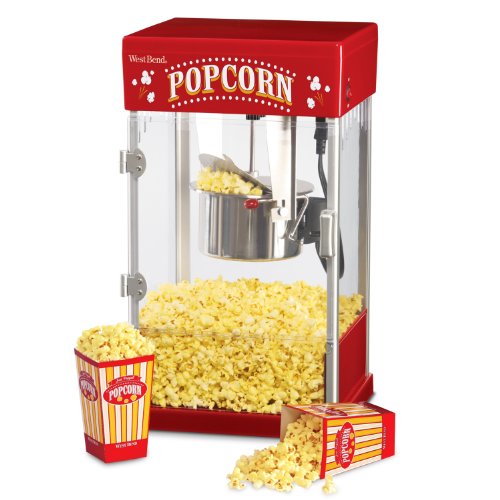 -. Binding : Kitchen -. Brand : West Bend -. Color : Red -. EAN : 0300145590436 -. Feature : Stainless Steel heating kettle with motorized stir rod / Kettle and stir rod should be hand washed only / Cabinet is easy to clean and grease and oil resistant / Light has on/off switch / Popcorn screen and removable popcorn tray, 500 watts -. IsAutographed : 0 -. IsMemorabilia : 0 -. Label : West Bend -. Manufacturer : West Bend -. Model : 82514 -. MPN : 82514 -. NumberOfItems : 1 -. PackageQuantity : 1 -. PartNumber : 82514 -. Platform : Windows -. ProductGroup : Kitchen -. ProductTypeName : KITCHEN -. Publisher : West Bend -. Studio : West Bend -. Title : West Bend 4 Ounce Theater Popper -. UPC : 080850362398 -. Warranty : 1 Year