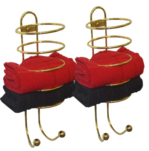 - Made by durable brass plated wire, constructed with 4 circle rings to hold the small hand towels and 2 hooks for bath towels.