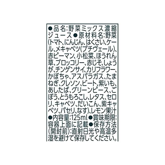 원재료:야채(토마토,(당근)인삼,서는 냄새가 나다,K《루》,《메캬베츠》(쁘띠 베일)고, 적피망,시금치,《모로헤이야》,브로콜리,양상추,샐러리,하 # 것이지만,자양배추,빨강 하 #고, 읽 #고, 친 겐 코뿔소,콜리플라워,《구레손》,파슬리,호박,아스파라거스,타마 파,비트,무우,평지의 변종,보라색 있도,아 했으면,가지,그린 피스,# 것이다)고, 레몬 과즙