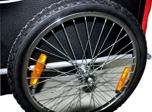 - Feature : Can be used as bike trailer or stroller; Comes with swivel Front wheel / Quickly converts to a stroller without using tools / 20" big wheels ride easily across uneven terrain; Thick tube, 5x thicker than others / Completely park brake to stop the stroller on slope / Full suspension system makes the baby trailer much more comfortable for your kids, and enables the jogging stroller to be used for all terrain