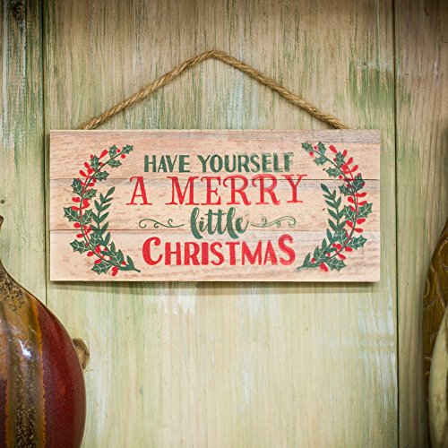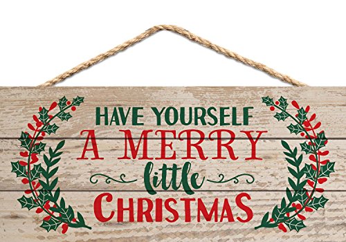 Have Yourself a Merry Little Christmas Holly 5 x 10 Wood Plank Design Hanging Sign
