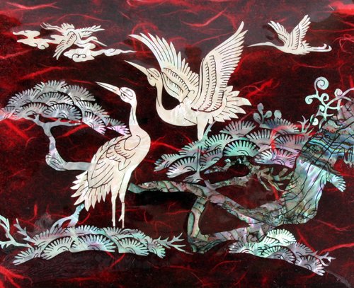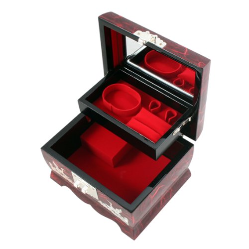 - Title : Mother of Pearl Musical Bird Design Wooden Girls Jewelry Mirror Trinket Keepsake Treasure Gift Music Asian Lacquer Box Case Chest Organizer with Crane and Pine Tree in Red Mulberry Paper