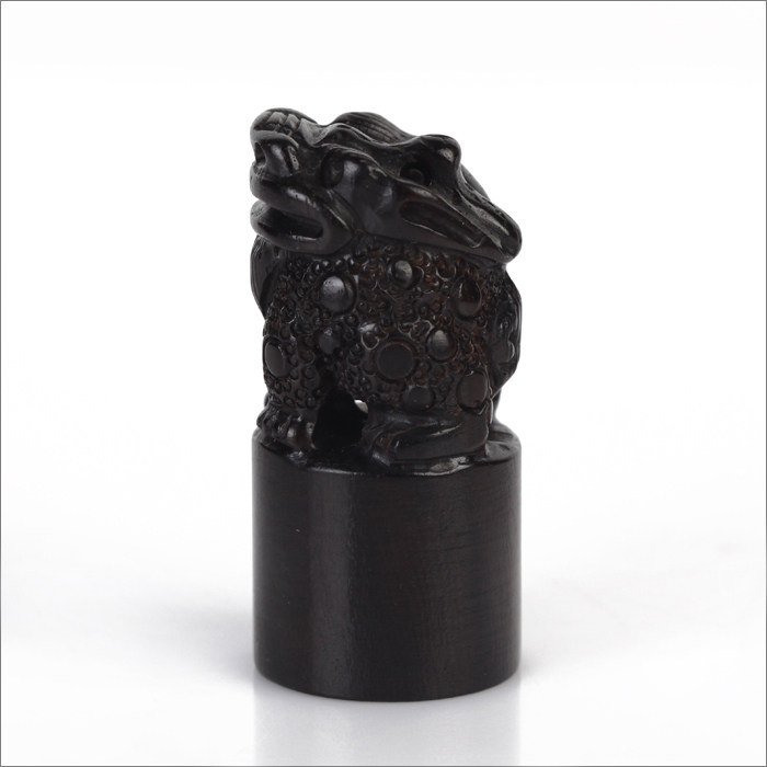 产品特点: 貔貅是一种祥瑞神兽,以金银财宝为食,放置于家宅之中,可招财旺财,镇宅化煞辟邪。貔貅护主心强,有镇宅辟邪之用。摆放貔貅可令家运好转、好运加强!黑檀木因木材结构极致密,木材硬重而均匀,心材乌黑色并具金属般光泽,被列入世界名木之列,是著名的工艺用材,黑檀木不论从质量或档次等方面应属红木中的极品。产品相关介绍:名称:貔貅印章材质:黑檀木尺寸:方底:约长2*宽2*高6.3cm; 圆底:约直径2.3*高4.3cm重量:方底:约20G;圆底:18G(净重)包装:吉祥物专用包装盒