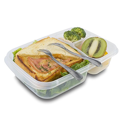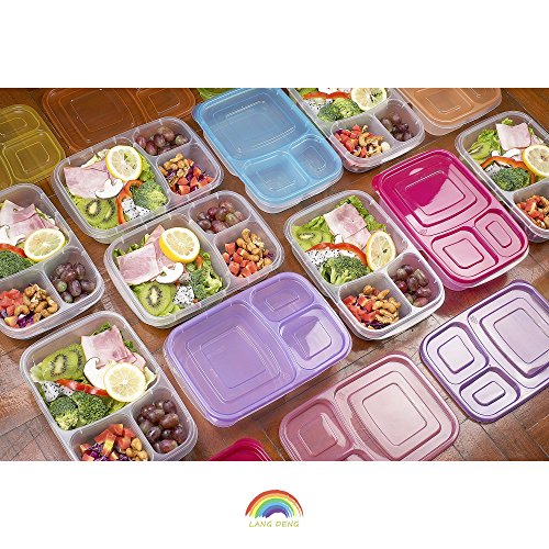Studio : LANG DENG Publisher : LANG DENG Product Description STACKABLE FOR COMPACT STORAGE The lunch-box containers stack one over the other for tidy storage in the fridge. Prep a few days worth of lunches ahead of time then grab and go. When not in use, the stackable lunch-box containers nest together to save on storage space. 3 SEPARATE COMPARTMENTS Each container provides three separate compartments, which help keep things neatly organized and prevent food from mixing together. The large compartment works well for sandwiches, green salads, veggie wraps, pasta, or other main courses, while the two smaller side compartments come in handy for fruit, vegetables, or desserts. FOOD-SAFE MATERIAL lunch containers with dividers set is both helpful and safe for food storage--pack lunches and snacks with ultimate peace of mind. The durable material holds up to everyday use and offers a transparent design for quickly checking contents without having to remove the lid. EASY-OPEN LIDS Not only do the lids securely hold in stored food, but they also remove without effort, making the containers a great choice for young kids. The lids are not leak-proof, however, so do not fill the bento box with soup, sauces, or other foods that could leak. MICROWAVE-,FREEZER-,AND DISHWASHER-SAFE The Bento lunch box Seven-piece set offers exceptional versatility and convenience. After packing your lunch, you can store the container in the refrigerator or freezer, microwave it at the office, then set it in the dishwasher for quick cleanup. -SUGGESTIONS PACKAGE Before microwaving, open a lid corner to allow steam to vent.