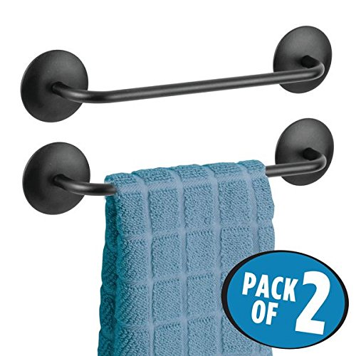 mDesign Kitchen Self-Adhesive Towel Bar Holder for Hand Towels, Dish Towels - Pack of 2, Matte Black