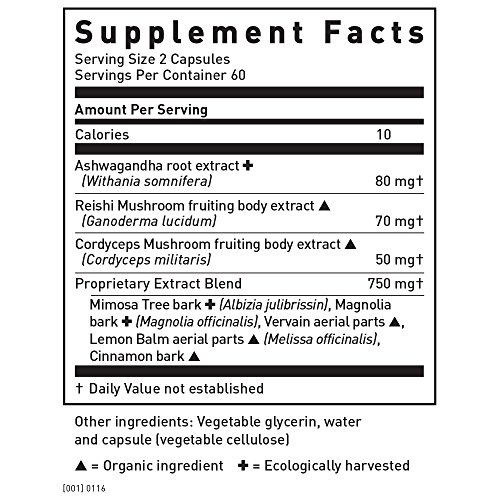 ORGANIC AND ECOLOGICALLY HARVESTED INGREDIENTS: Made with organic Reishi, Cordyceps, Lemon Balm and Vervain; and with ecologically harvested, responsibly-sourced Ashwagandha, Mimosa bark and Magnolia bark.