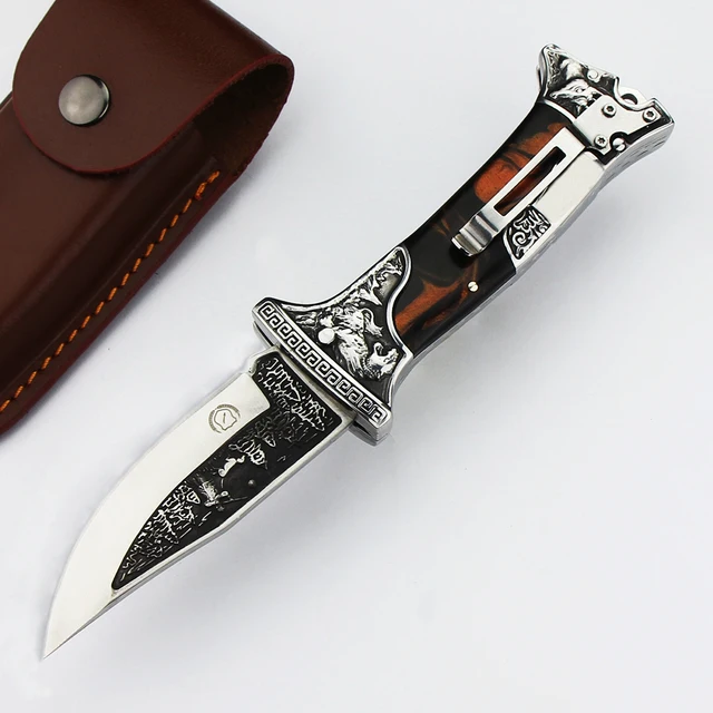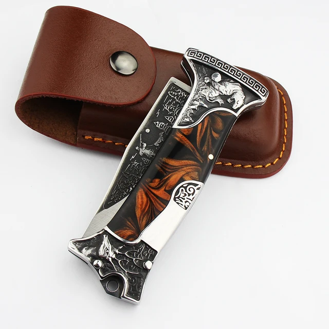 | [해외] 뜨거운! 야외 사냥 접는 칼 흑단 핸들 + D2 블레이드 캠핑 전술 생존 야외 구조 실용적인 EDC 도구 |