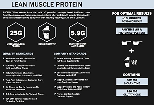 MORE ANTIOXIDANTS & PROTEIN CO-FACTORS: PROMIX is the ONLY grass-fed whey with 3rd Party Verified Glutathione (Mother of All Antioxidants) with 180mg/serving. PROMIX whey is undenatured and uses advanced cold processing to protect naturally occurring, vital protein co-factors for so you get more bioactive ingredients: lactoferrin, CLA's and L-Carnitine