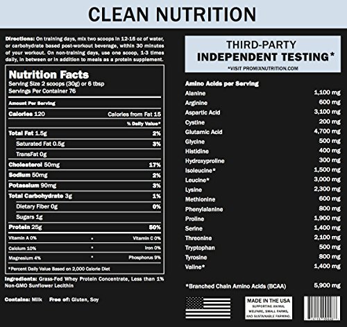 BETTER NUTRITION: Our unflavored, unsweetened protein powder has 25g Protein, 1g Sugar & 5.9g BCAAs (branched-chain amino acids) per serving. The optimum ingredients for clean nutrition, lean muscle and the best fitness results. Men & Women choose PROMIX powders for a pure, clean way to build their body, regain energy, balance their diet and loss weight
