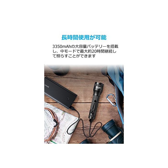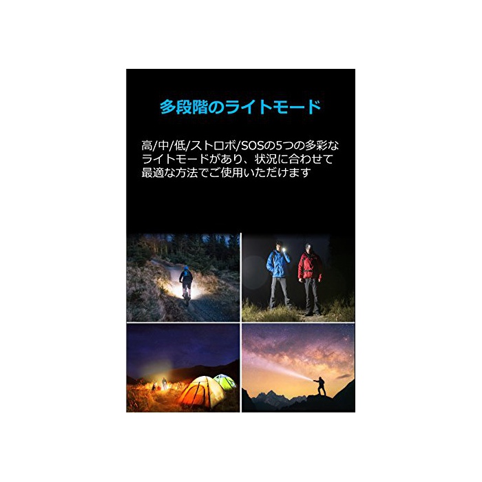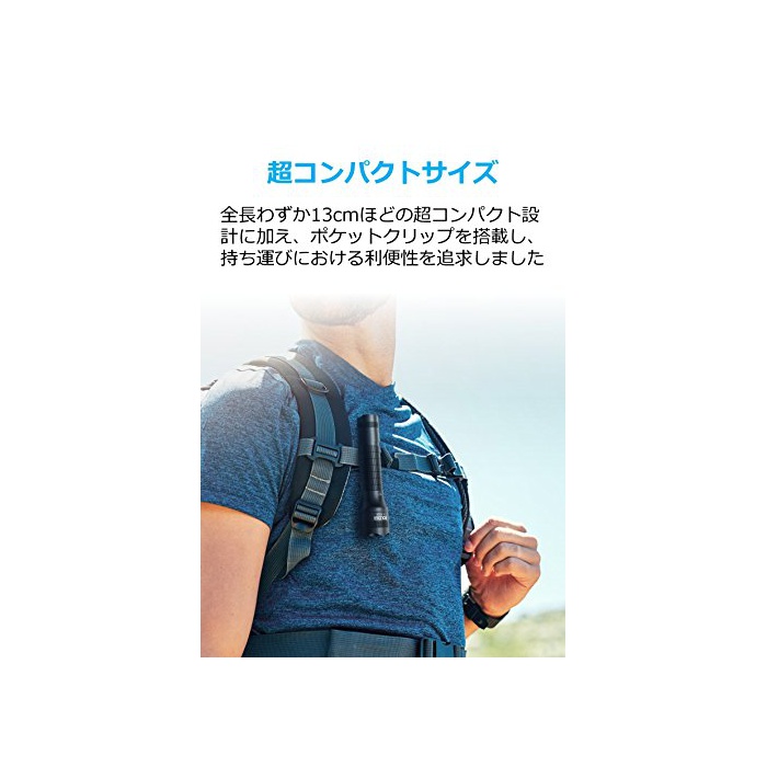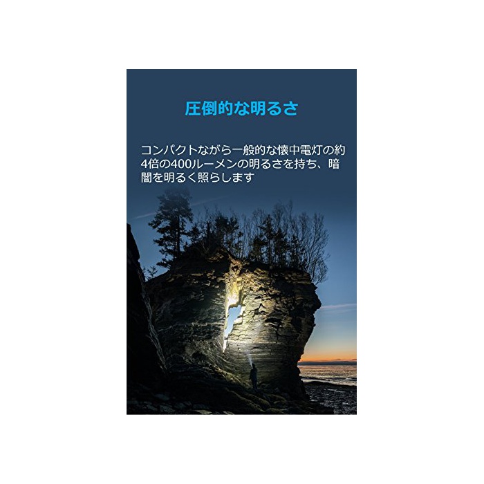 【※주의:Anker제품은 AnkerDirect만이 정규 판매점 그래서 주의하여 주십시오】Anker제품의 강점:2000만명 이상이 지지 하는 Amazon제1위의 충전 제품 브랜드를 부디 시험해 주십시오.놀랄 만한 밝기:컴팩트하면서400루멘의 밝기를 소유,어둠을 밝게 비춥니다.높음 / 중 / 저 / 스트로보 / SOS의 5개의 라이트 모드에 교환이 가능합니다.