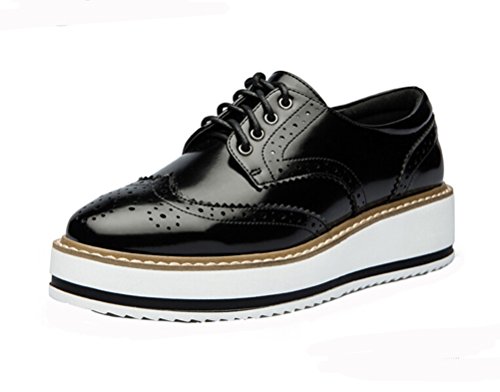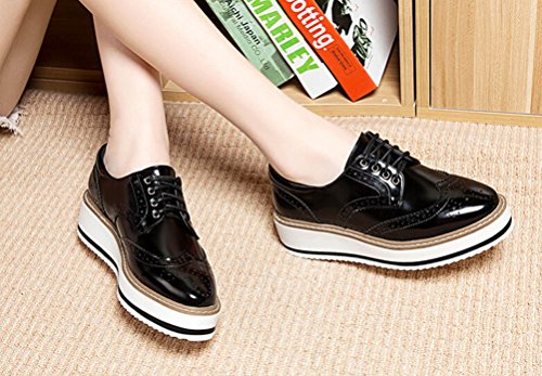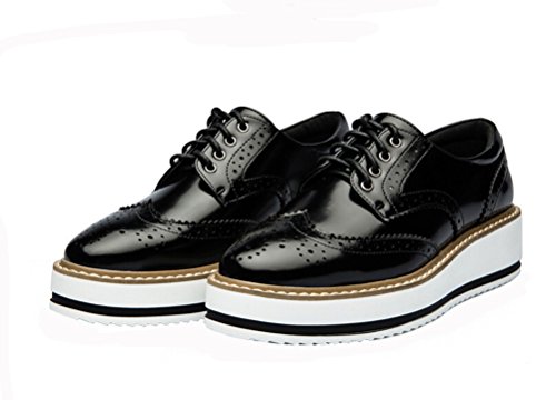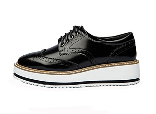 (LAIKAJINDUN)/Women's/Lace-Ups/DIRECT FROM USA/Women Retro Platform Flat Shoe Leather Casual Oxford Shoe (Black/White)