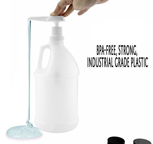 Studio : Cornucopia Brands Publisher : Cornucopia Brands Product Description Half Gallon Jugs w/ Pumps (2-Pack); 64-Ounce / 2 Quart Bottles w/ Lotion Liquid Pump Tops for DIY Hot Sauce Woozy Bottle Filling, Liquid Soap, Etc., Storage Lids Included Personal care use: Mix your own liquid soaps, shampoos, massage oils, cleaning solutions, detergents, body washes more then easily fill smaller containers. Kitchen food use: Use to make your own DIY hot sauces, sauces, dressings, vinegars, flavored oils, snow cone coffee syrups, homemade vanilla, etc. Makes filling smaller bottles a cinch. This is definitely home canner bottler's friend. Garden garage use: Use for car care. Use for plant care solutions. Value 2-pack 6-part set: You get TWO half gallon HDPE #2 plastic jugs; TWO plastic pump tops; and TWO black smooth lids for storage. Party use: Use for condiment dispensing at a large party. Use for popcorn butter.p> CAPACITY: 64 ounces = 8 cups = 2 quarts = half gallon. Flow capacity of tube: 1 ounce. SIZE: 12" tall closed, 15" tall opened. 5" diameter jug. Jug mouth size 38-400. MATERIAL: Jug is #2 HDPE plastic. Dip tube black lids are #5 PP Plastic. All BPA-free food safe. COLOR: Jug is natural white color, semi-transparent. Pump top is white. Lids are black. Food grade, BPA-free plastic, dishwasher safe, bottle is heat tolerant to 170 degrees F, dip tube is heat tolerant to 240 degrees F, recyclable plastic Dip tube instructions: twist counterclockwise to open; press down twist clockwise to close for storage. 0 |