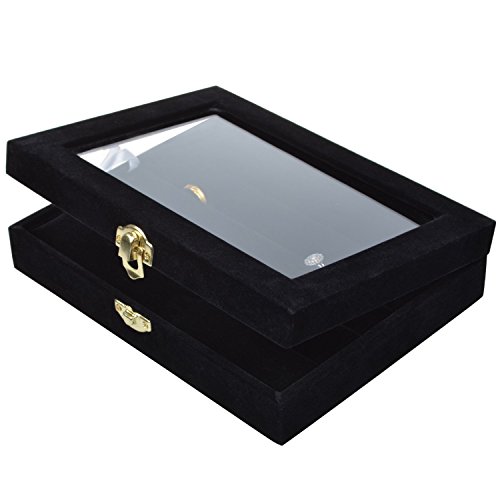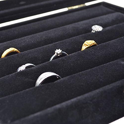 - Feature : Glass Top Box / 4 row slots for holding rings or earrings,best gift choose for her / Easy to insert and pull out / Size:8"x6"x1.75", Black Color / Made of high quality velvet