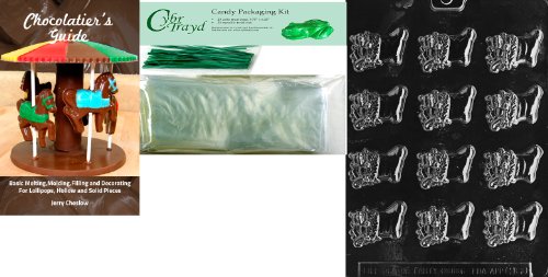 Cybrtrayd B.S. Filled Stocking Chocolate Mold with Chocolatier's Bundle of 25 Cello Bags, 25 Green Twist Ties and Chocolatier's Guide