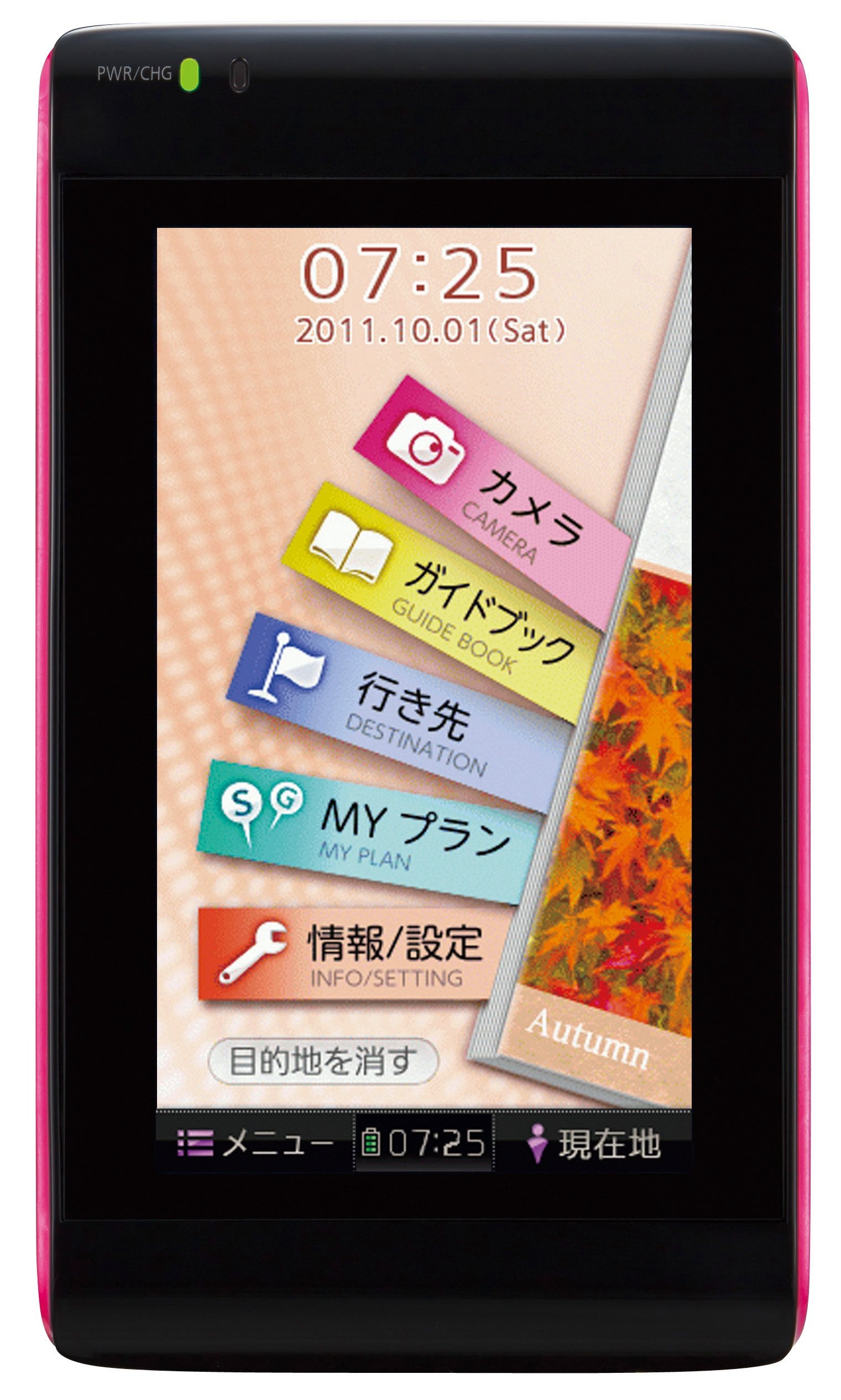 Supporting town walking Enriched Navi function Full packed Recommended spot nearby Automatic notice "Okusamei concierge" equipped Calorie consumption, with a roof, etc. Supporting a fun walking street with 5 different walking routes GPS, electronic