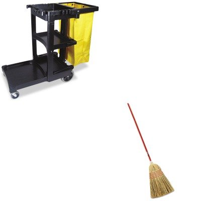 Studio : Rubbermaid Publisher : Rubbermaid Binding : Office Product Product Description lt;stronggt;RCP6381lt;/stronggt;lt;BR/gt;Rubbermaid Standard Corn-Fill Broomlt;BR/gt;Bristles effectively move fine and coarse dirt and debris from both rough and smooth surfaces. Rugged corn fill is stitched multiple times for durability. Heavy-duty, thickly lacquered wood handle minimizes the potential for cracking and splintering. Application: Bare Floors Indoor Outdoor Bristle Material: Corn Fiber Bristle Length: 18amp;quot; Handle Material: Lacquered Pine.lt;BR/gt;lt;BR/gt;lt;stronggt;RCP617388BKlt;/stronggt;lt;BR/gt;Rubbermaid Standard Corn-Fill Broomlt;BR/gt;25-gallon vinyl bag attaches to handle. Three shelves for supplies hooks for mops and brooms. Platform holds standard size bucket supplies not incl.. Color: Black Caster/Glide/Wheel: Four Casters. 0
