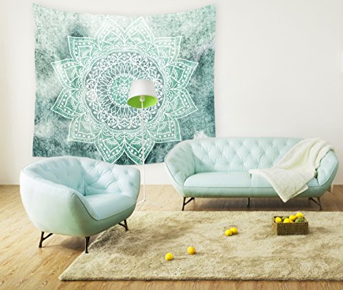 - PREMIUM QUALITY: This Teal Mandala Wall Hanging Tapestry is made of High Quality Polyester with Dedicated Sewing. Digital Printing Make it will never faded even for times washing;
