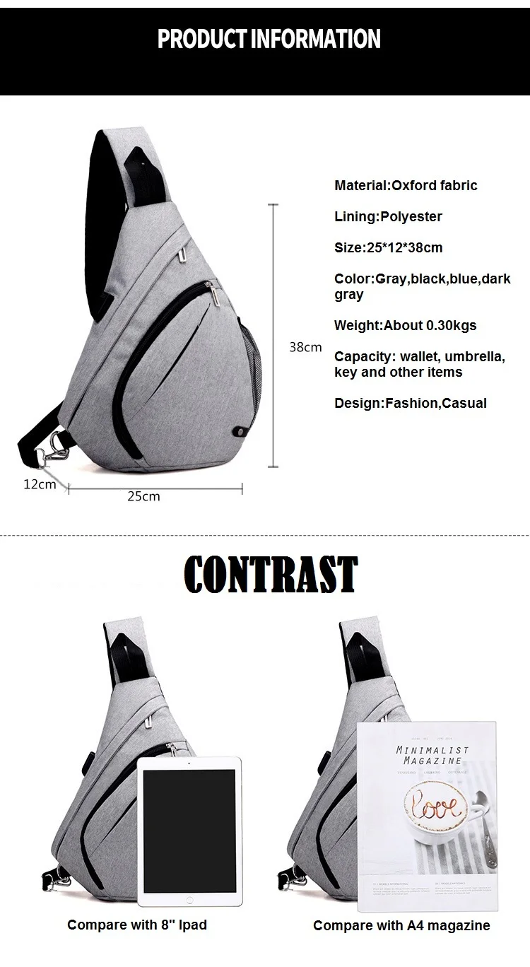 Quality:High quality chest bag,crossbody bag,school bag,gym bag