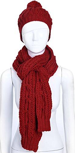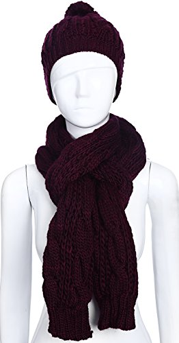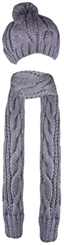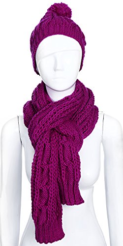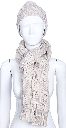 The beanie and scarf set is made out of 100% acrylic material and use cable knit pattern. Looks very beautiful