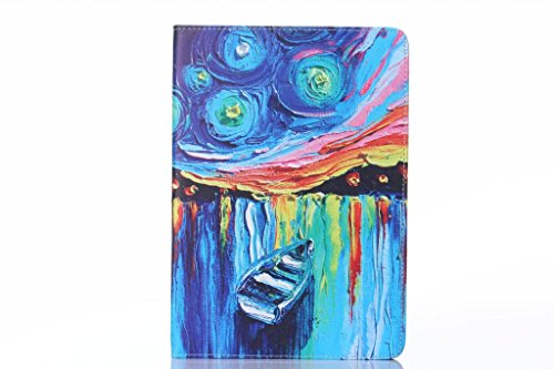 Oil Painting Art Series Starry Night Style Smart Wallet Leather Case Stand with Card Holder for Apple iPad Air 2(iPad 6)(with Sleep/Wake Function)