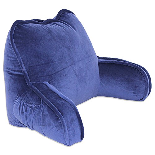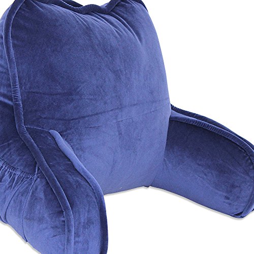 Product Description Plush backrest is perfect for sitting up in bed to watch television, read a book or play video games. It's generously filled for comfort, and there's a pocket on the side for convenience and a handle on top for easy transporting. 0