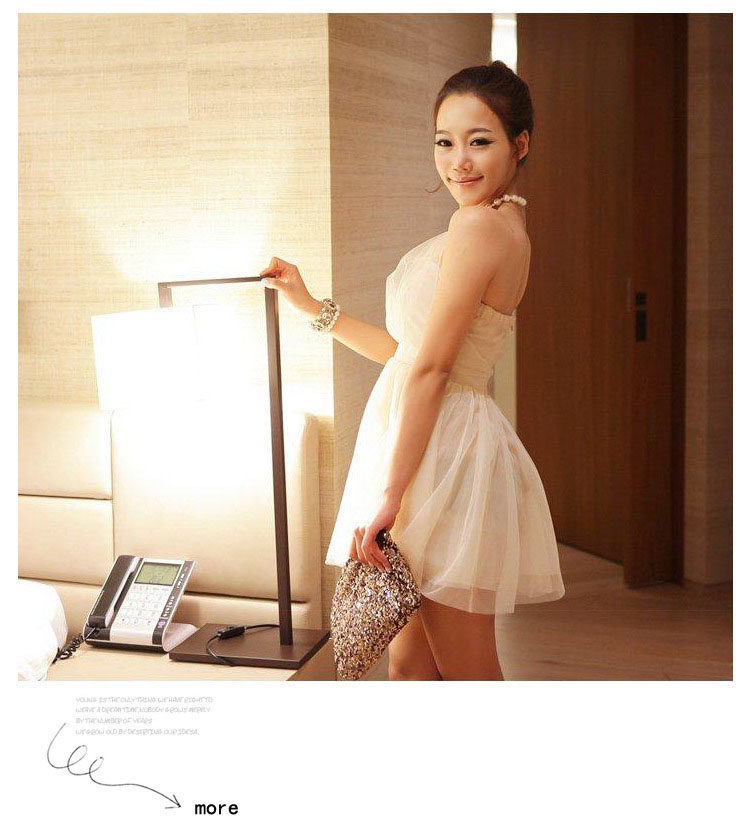 夏季新款夜店女装珍珠挂脖露背露肩公主蓬蓬网纱小礼服连衣裙